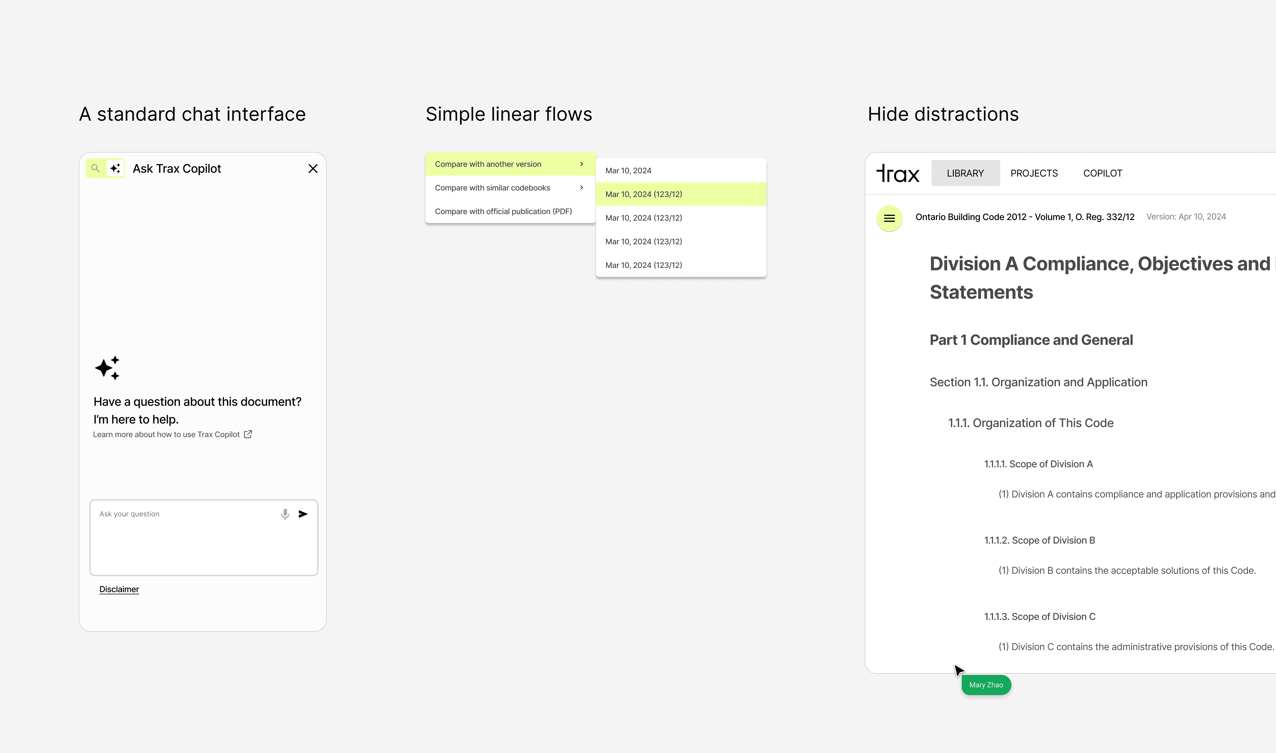 Our goal was to design a more intuitive experience for building compliance officers searching for answers within 500+ pages of highly technical building code documents. We had just 8 weeks.