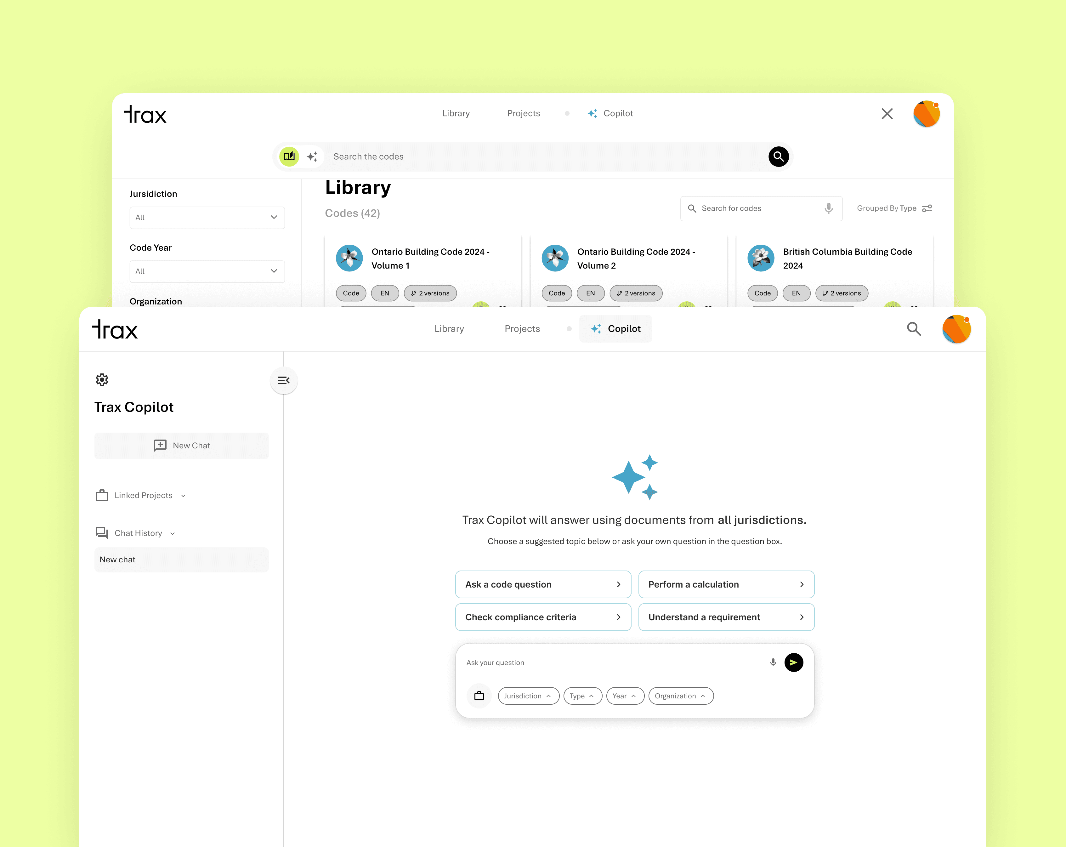 Want to ask about the entire database? Search directly from the top nav bar or use Trax Copilot's new landing page for Pro members.